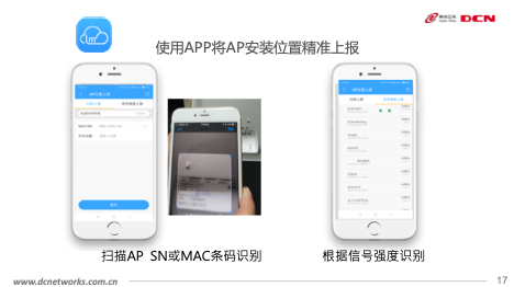 实施人员,顺利获得简单的步骤,即完成原来繁琐的无线ap位置收集工作,可以让施工人员随装随走,降低时间成本,有效保障后续网络维护响应速度,间接提升无线网络的质量。实施人员,用手机APP扫描ap条码,输入位置信息,上报公有云平台,完成整个ap设备信息、组织组织分组和安装位置信息上报的功能;